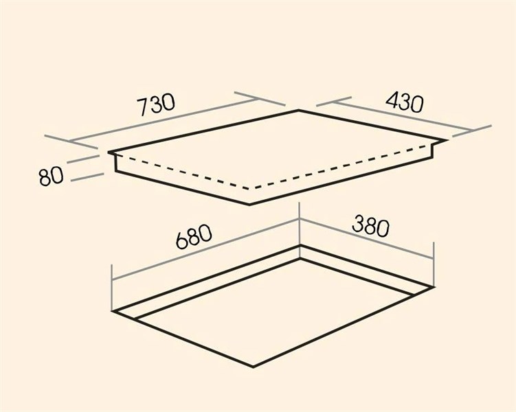 -Bếp 02 lò: 02 lò từ, viền cạnh nẹp nhôm