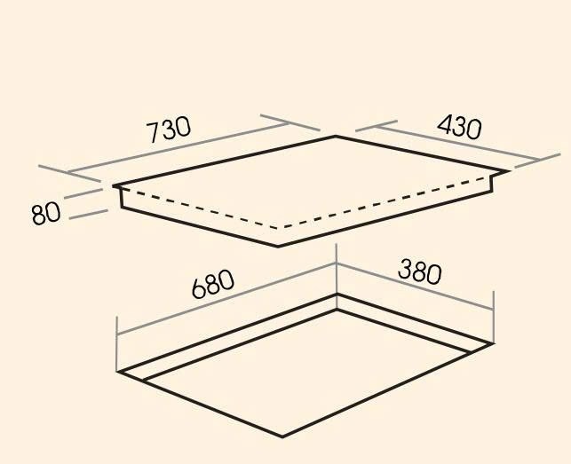 -Kích thước khoét đá: 680x380mm