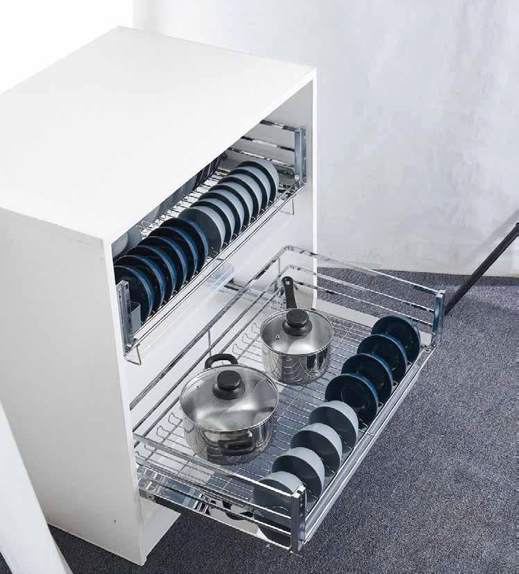 Giá bát đĩa xoong nồi tủ dưới phiên bản bắt cánh có cơ cấu chuyển động êm ái. Với thiết kế thông minh giúp tăng diện tích lưu trữ và linh hoạt trong sắp xếp đồ dùng nhà bếp. Hỗ trợ bảo hành han gỉ vĩnh viễn với phần rổ inox 304.