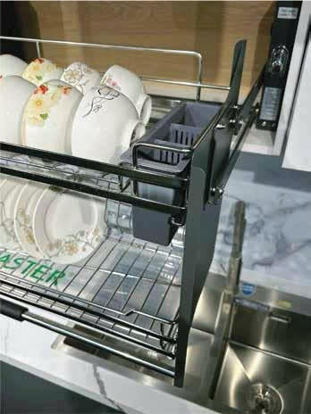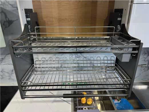 Giá bát nâng hạ tủ trên là giải pháp không gian tủ bếp trên có cơ cấu chuyển động êm ái. Thiết kế giá bát thông minh giúp tăng diện tích lưu trữ và linh hoạt trong sắp xếp đồ dùng nhà bếp. Hỗ trợ bảo hành han gỉ vĩnh viễn với phần rổ Inox 304.