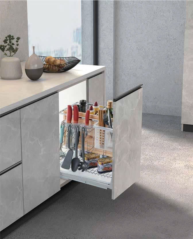 Giá đa năng với sự kết hợp 2 trong 1: Bắt cánh và không bắt cánh làm tăng diện tích lưu trữ cho không gian tủ bếp dưới Giá đa năng để gia vị, chai lọ và dao thớt, có ray âm giảm chấn cao cấp. Thiết kế thông minh giúp tăng diện tích lưu trữ và linh hoạt trong sắp xếp đồ dùng nhà bếp Bảo hành han gỉ vĩnh viễn với phần rổ inox 304