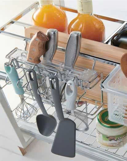 Giá đa năng với sự kết hợp 2 trong 1: Bắt cánh và không bắt cánh làm tăng diện tích lưu trữ cho không gian tủ bếp dưới Giá đa năng để gia vị, chai lọ và dao thớt, có ray âm giảm chấn cao cấp. Thiết kế thông minh giúp tăng diện tích lưu trữ và linh hoạt trong sắp xếp đồ dùng nhà bếp Bảo hành han gỉ vĩnh viễn với phần rổ inox 304