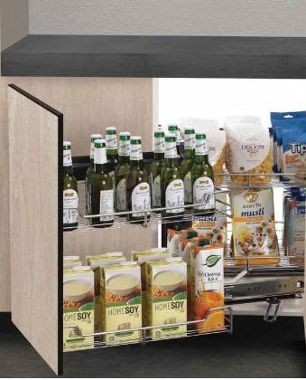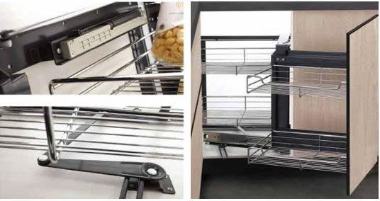Góc xoay liên hoàn với 2 tầng, 4 khay làm tăng diện tích lưu trữ. Kết hợp 2 trong 1: có thể lắp mở trái và mở phải, cơ cấu chuyển dộng êm ái.