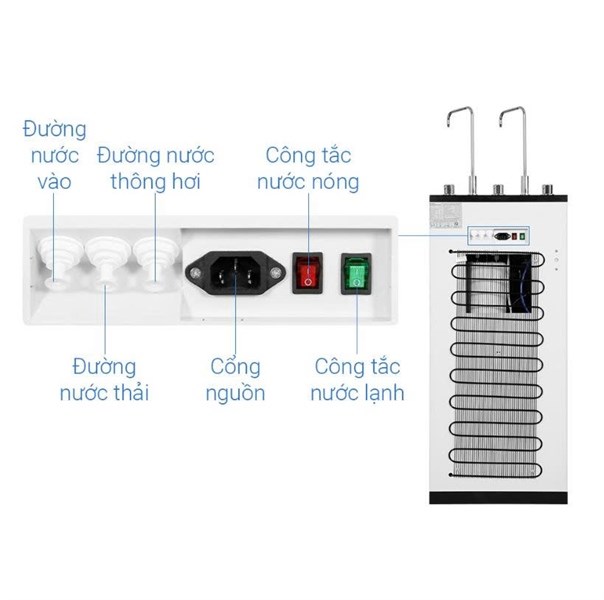 -Vòi lấy nước: 2 vòi nóng lạnh riêng biệt